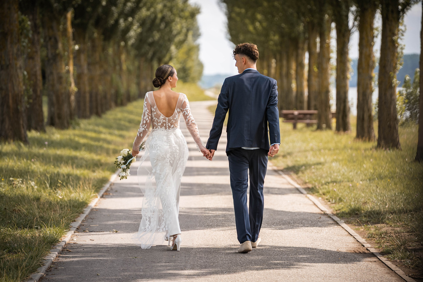 Ich empfehle für euer Brautpaarshooting am Hochzeitstag mindestens 45 Minuten einzuplanen. Den Zeitpunkt und die Location werden wir im Vorraus besprechen. Gut sind Shootings kurz vor Sonnenuntergang, da dann das Licht am schönsten ist. Aber auch Fotos vor der Trauung oder After-Wedding-Shootings sind sehr beliebt, da ihr so nicht von euren Gästen wegmüsst.